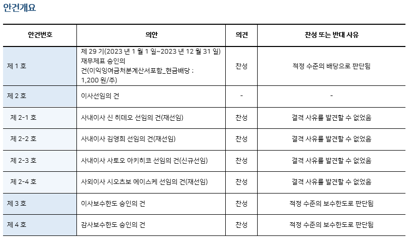 * 본 의안분석은 아주기업경영연구소의 의결권 행사 가이드라인에 따라 작성된 것이며, 세부 내용은 고객사에게만 제공됩니다.