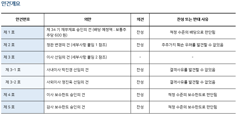 * 본 의안분석은 아주기업경영연구소의 의결권 행사 가이드라인에 따라 작성된 것이며, 세부 내용은 고객사에게만 제공됩니다.