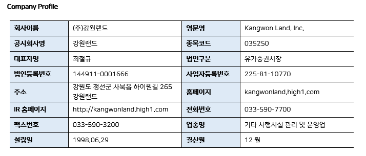 - 강원특별자치도 정선군 사북읍 하이원길 265
