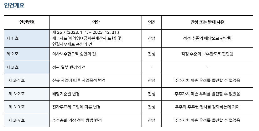 * 본 의안분석은 아주기업경영연구소의 의결권 행사 가이드라인에 따라 작성된 것이며, 세부 내용은 고객사에게만 제공됩니다.