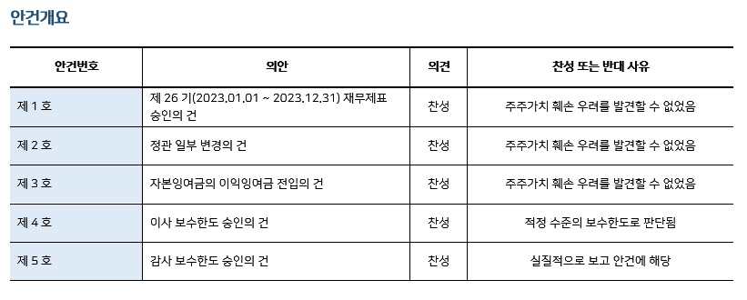 * 본 의안분석은 아주기업경영연구소의 의결권 행사 가이드라인에 따라 작성된 것이며, 세부 내용은 고객사에게만 제공됩니다.