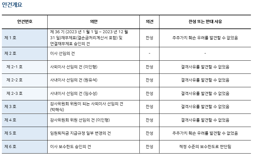* 본 의안분석은 아주기업경영연구소의 의결권 행사 가이드라인에 따라 작성된 것이며, 세부 내용은 고객사에게만 제공됩니다.