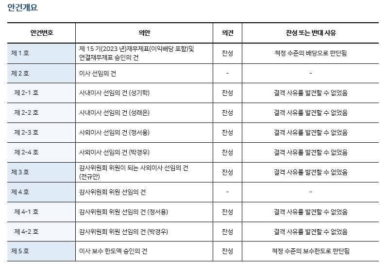 * 본 의안분석은 아주기업경영연구소의 의결권 행사 가이드라인에 따라 작성된 것이며, 세부 내용은 고객사에게만 제공됩니다.