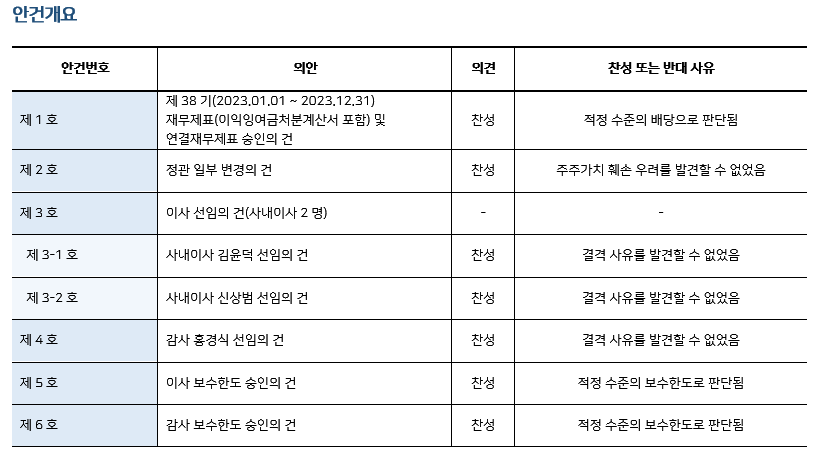 * 본 의안분석은 아주기업경영연구소의 의결권 행사 가이드라인에 따라 작성된 것이며, 세부 내용은 고객사에게만 제공됩니다.