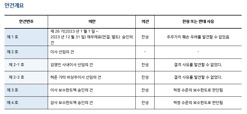 * 본 의안분석은 아주기업경영연구소의 의결권 행사 가이드라인에 따라 작성된 것이며, 세부 내용은 고객사에게만 제공됩니다.