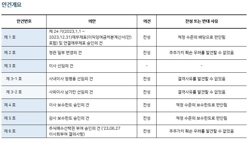 * 본 의안분석은 아주기업경영연구소의 의결권 행사 가이드라인에 따라 작성된 것이며, 세부 내용은 고객사에게만 제공됩니다.