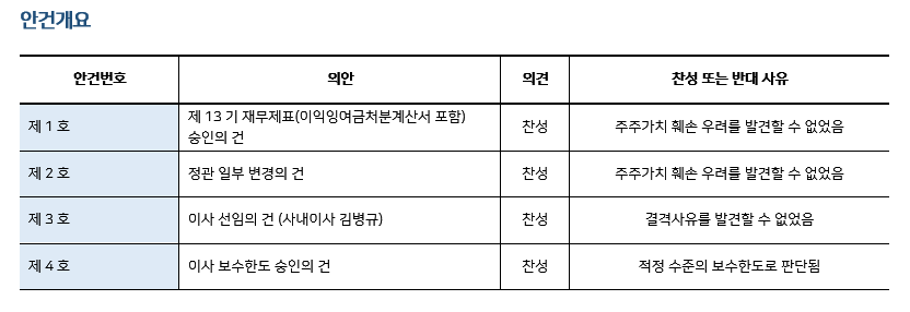 * 본 의안분석은 아주기업경영연구소의 의결권 행사 가이드라인에 따라 작성된 것이며, 세부 내용은 고객사에게만 제공됩니다.