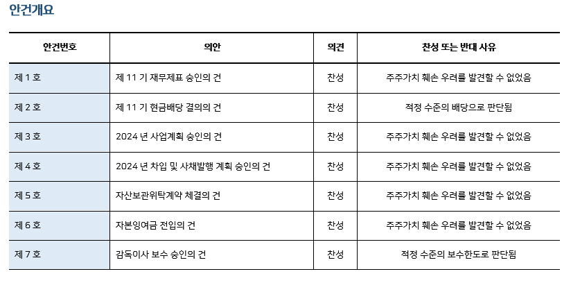 * 본 의안분석은 아주기업경영연구소의 의결권 행사 가이드라인에 따라 작성된 것이며, 세부 내용은 고객사에게만 제공됩니다.
