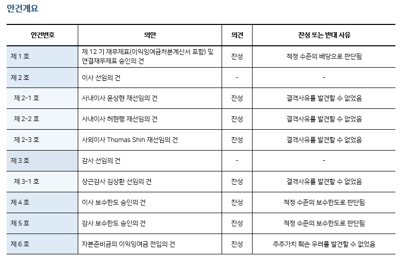 * 본 의안분석은 아주기업경영연구소의 의결권 행사 가이드라인에 따라 작성된 것이며, 세부 내용은 고객사에게만 제공됩니다.