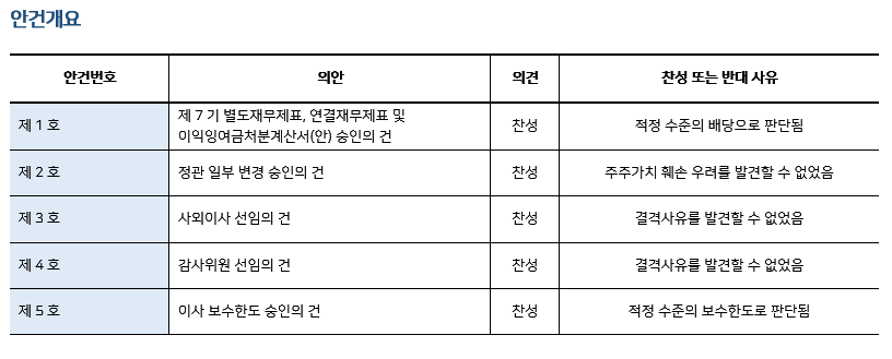 * 본 의안분석은 아주기업경영연구소의 의결권 행사 가이드라인에 따라 작성된 것이며, 세부 내용은 고객사에게만 제공됩니다.