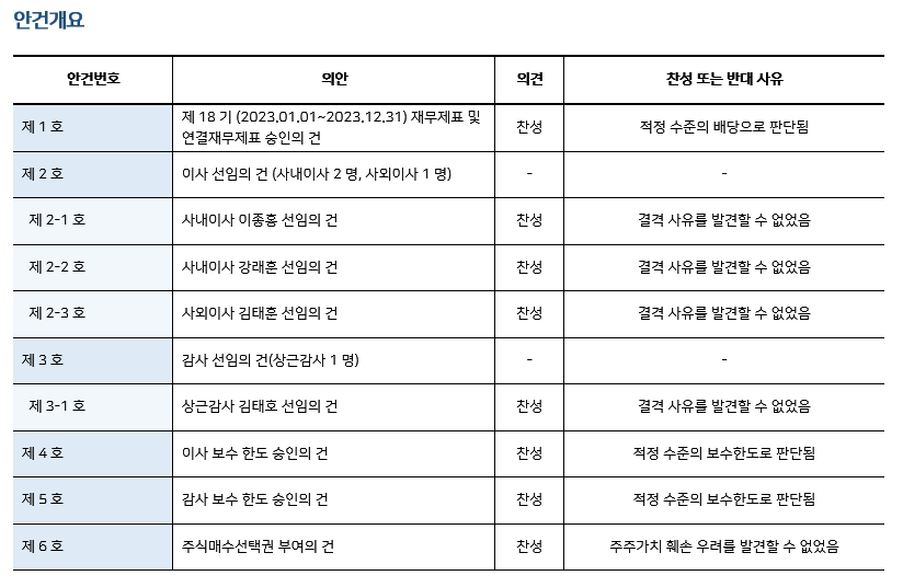 * 본 의안분석은 아주기업경영연구소의 의결권 행사 가이드라인에 따라 작성된 것이며, 세부 내용은 고객사에게만 제공됩니다.