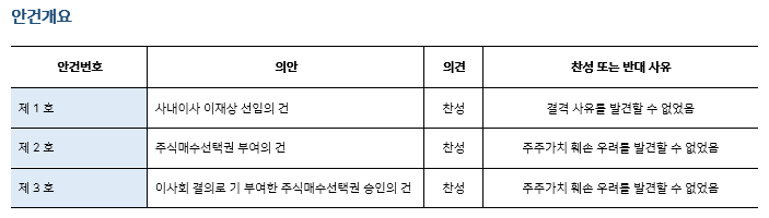 * 본 의안분석은 아주기업경영연구소의 의결권 행사 가이드라인에 따라 작성된 것이며, 세부 내용은 고객사에게만 제공됩니다.