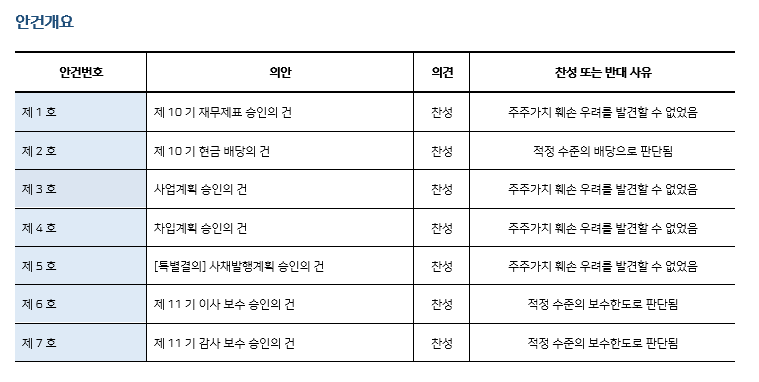 * 본 의안분석은 아주기업경영연구소의 의결권 행사 가이드라인에 따라 작성된 것이며, 세부 내용은 고객사에게만 제공됩니다.