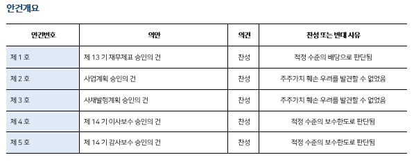 * 본 의안분석은 아주기업경영연구소의 의결권 행사 가이드라인에 따라 작성된 것이며, 세부 내용은 고객사에게만 제공됩니다.
