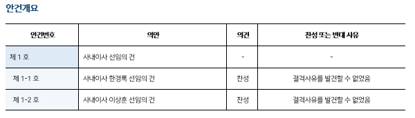 * 본 의안분석은 아주기업경영연구소의 의결권 행사 가이드라인에 따라 작성된 것이며, 세부 내용은 고객사에게만 제공됩니다.