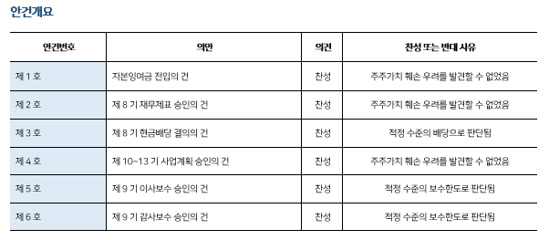 * 본 의안분석은 아주기업경영연구소의 의결권 행사 가이드라인에 따라 작성된 것이며, 세부 내용은 고객사에게만 제공됩니다.