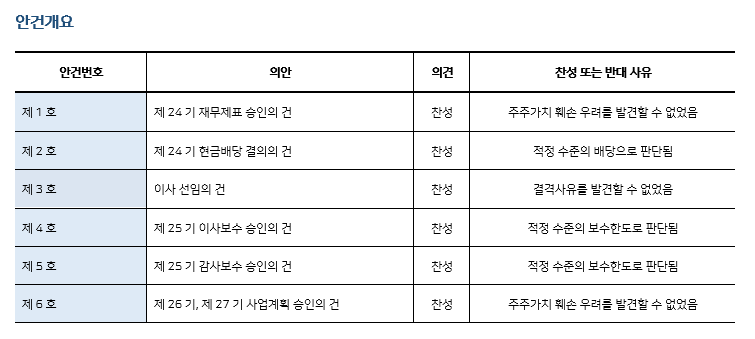 * 본 의안분석은 아주기업경영연구소의 의결권 행사 가이드라인에 따라 작성된 것이며, 세부 내용은 고객사에게만 제공됩니다.