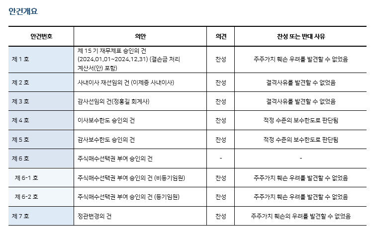 * 본 의안분석은 아주기업경영연구소의 의결권 행사 가이드라인에 따라 작성된 것이며, 세부 내용은 고객사에게만 제공됩니다.