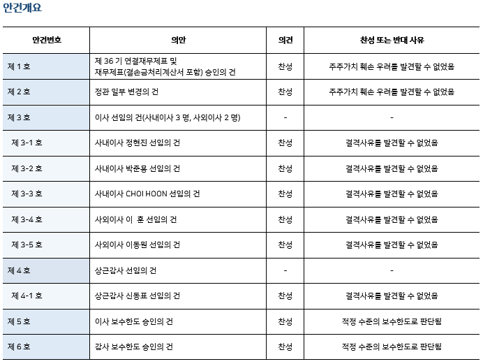 * 본 의안분석은 아주기업경영연구소의 의결권 행사 가이드라인에 따라 작성된 것이며, 세부 내용은 고객사에게만 제공됩니다.