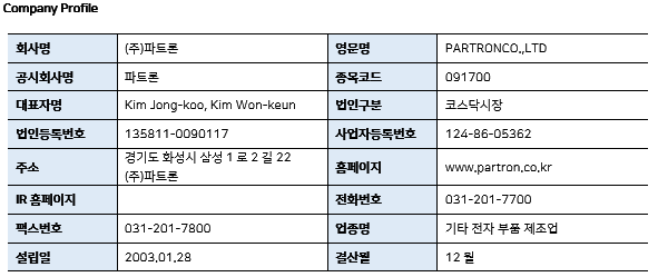 - 경기도 화성시 삼성1로2길 22 ㈜파트론 본사 2층 대회의실