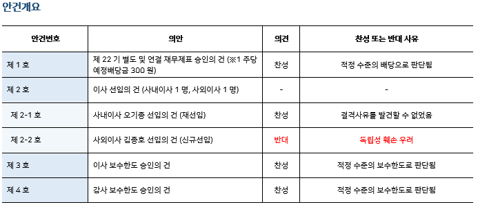 * 본 의안분석은 아주기업경영연구소의 의결권 행사 가이드라인에 따라 작성된 것이며, 세부 내용은 고객사에게만 제공됩니다.