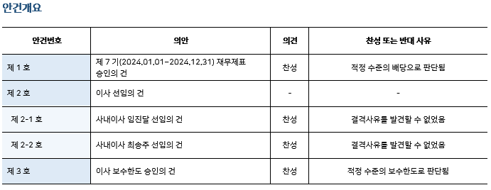 * 본 의안분석은 아주기업경영연구소의 의결권 행사 가이드라인에 따라 작성된 것이며, 세부 내용은 고객사에게만 제공됩니다.