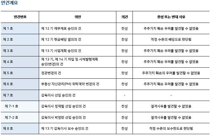 * 본 의안분석은 아주기업경영연구소의 의결권 행사 가이드라인에 따라 작성된 것이며, 세부 내용은 고객사에게만 제공됩니다.
