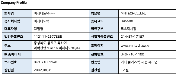 - 충북 청주시 흥덕구 옥산면 과학산업1로 16 미래나노텍(주) 본사