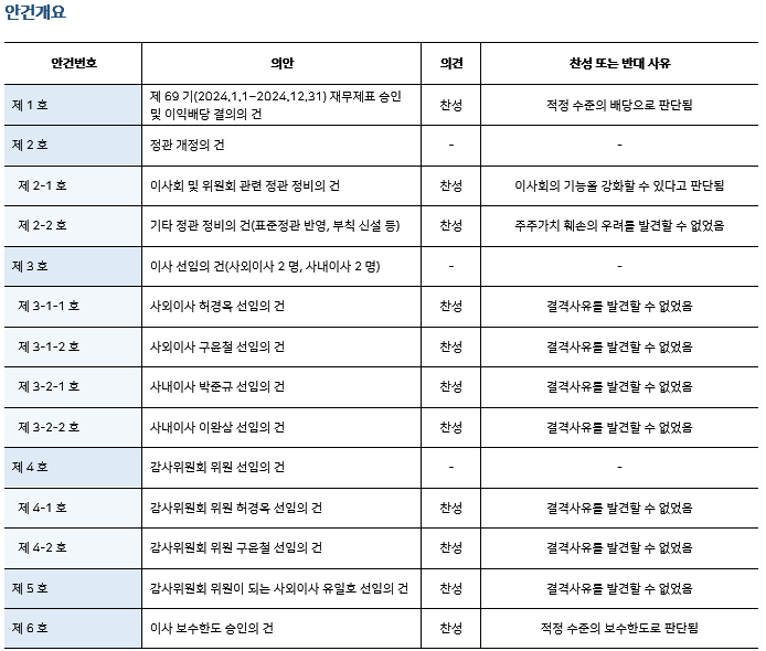 * 본 의안분석은 아주기업경영연구소의 의결권 행사 가이드라인에 따라 작성된 것이며, 세부 내용은 고객사에게만 제공됩니다.