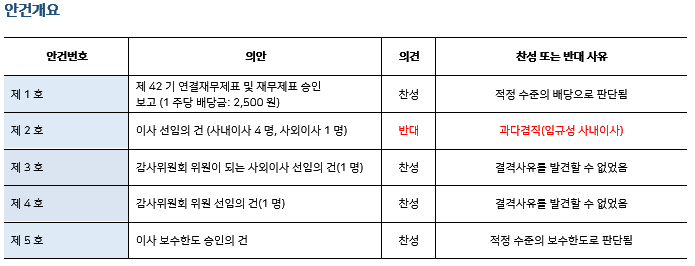 * 본 의안분석은 아주기업경영연구소의 의결권 행사 가이드라인에 따라 작성된 것이며, 세부 내용은 고객사에게만 제공됩니다.