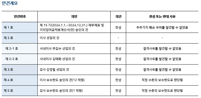 * 본 의안분석은 아주기업경영연구소의 의결권 행사 가이드라인에 따라 작성된 것이며, 세부 내용은 고객사에게만 제공됩니다.