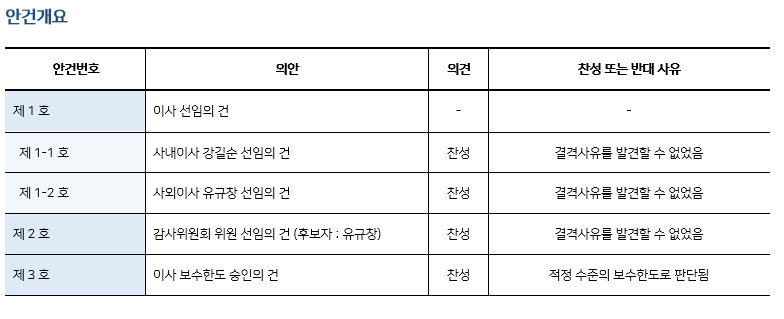 * 본 의안분석은 아주기업경영연구소의 의결권 행사 가이드라인에 따라 작성된 것이며, 세부 내용은 고객사에게만 제공됩니다.
