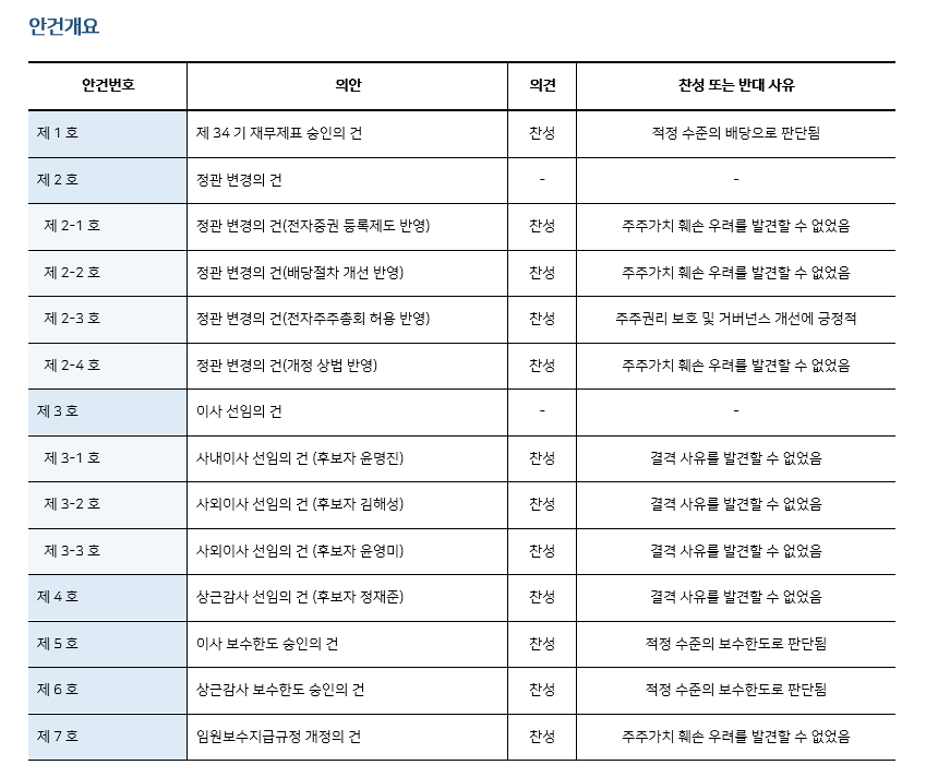 * 본 의안분석은 아주기업경영연구소의 의결권 행사 가이드라인에 따라 작성된 것이며, 세부 내용은 고객사에게만 제공됩니다.