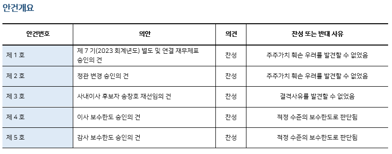 * 본 의안분석은 아주기업경영연구소의 의결권 행사 가이드라인에 따라 작성된 것이며, 세부 내용은 고객사에게만 제공됩니다.