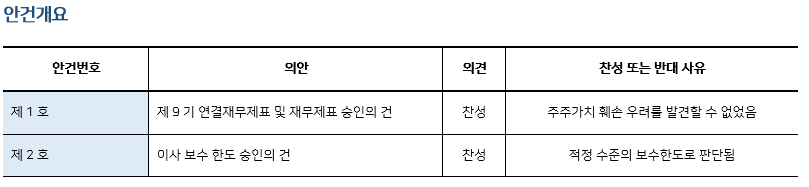 * 본 의안분석은 아주기업경영연구소의 의결권 행사 가이드라인에 따라 작성된 것이며, 세부 내용은 고객사에게만 제공됩니다.