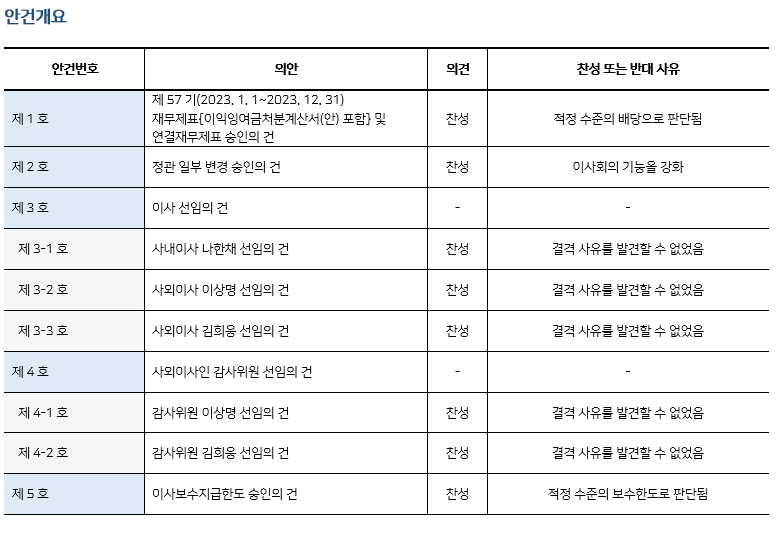 * 본 의안분석은 아주기업경영연구소의 의결권 행사 가이드라인에 따라 작성된 것이며, 세부 내용은 고객사에게만 제공됩니다.