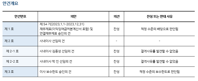 * 본 의안분석은 아주기업경영연구소의 의결권 행사 가이드라인에 따라 작성된 것이며, 세부 내용은 고객사에게만 제공됩니다.